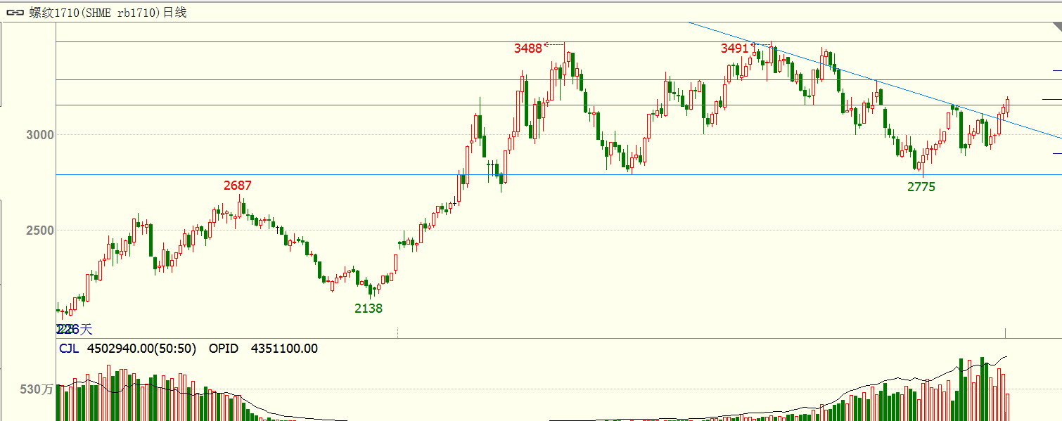 工业品期货反弹级别提升 螺纹钢强势涨破3200