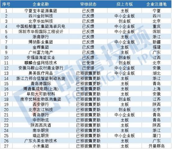 IPO企业最新排队名单(截至2018.1.4) 涉多家环