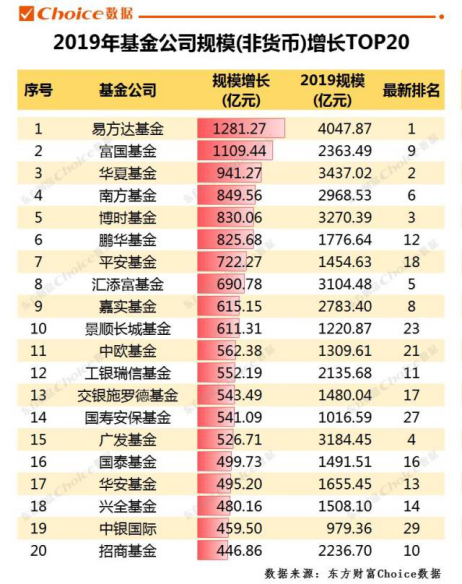 2019基金规模:易方达华夏居前 广发中银嘉实排