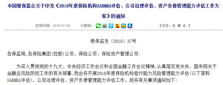 行业 | 保险行业SARMRA得分连续下降 寿险风