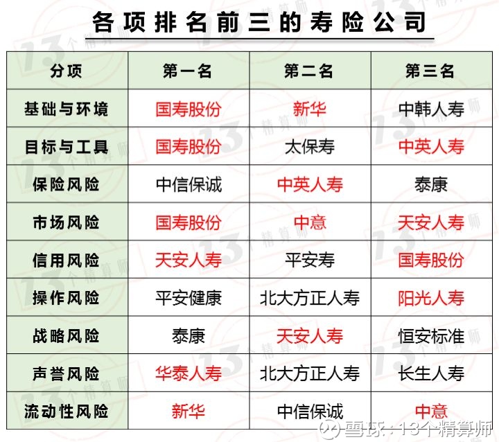 寿险公司2017年SARMRA分项得分排行榜!
