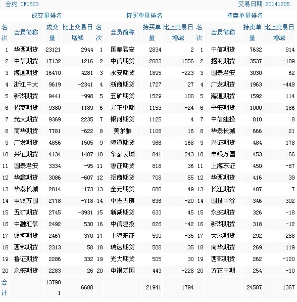 12月5日股指期货成交持仓排行榜