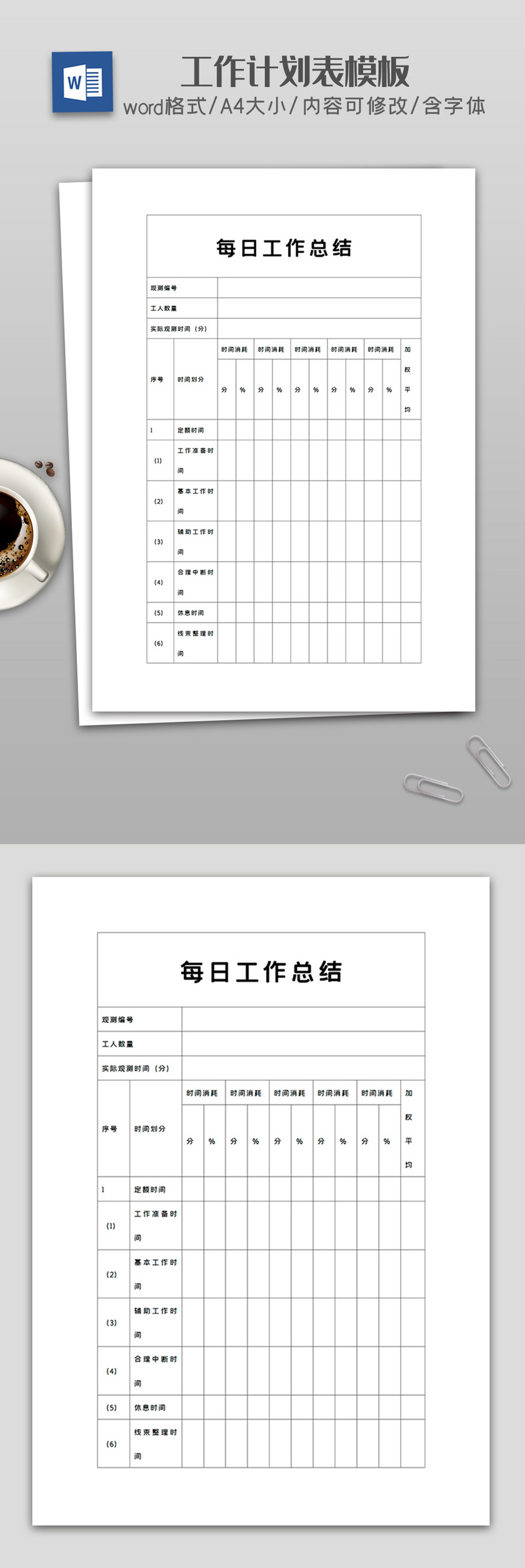 每日工作总结进度表部门: 填表人: 日期: 本日工作完成事项:和计划对比完成效率:本日工作进展事项:计划完成时间:次日工作计划:计划完成时间:经验交流:寻求公司帮助: