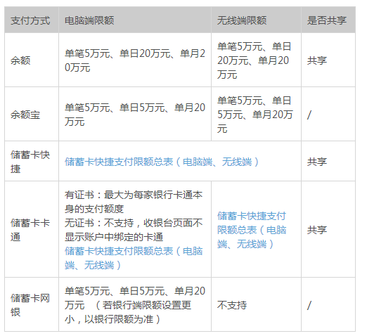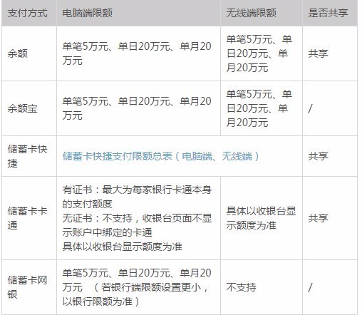 [最佳答案] 看你用那种方式支付1、网银进行支付宝转账最大限额是2万每天2、余额转账方式,数字证书用户转账每天最大额度是2万,而非数字证书用户、支付盾、第三方证书的,认证用户2万每天3、而未认证的用户通过支付宝余额转账的额度每天是2000元 转账到银行卡的限额 每个支付宝账户操作转账到银行卡限额(含手续费):单笔5万,单日20万元,单月20万元,具体见下表: 1、余额 5万/笔;20万/天,20万/月 5万/笔;20万/天,20万/月 2、余额宝 5万/笔,5万/日,20万/月 5万/笔;5万/天,20万/月 3、储蓄卡快捷 以收银台显示额度为准 以收银台显示额度为准 4、储蓄卡卡通 有证书:每家银行卡通本身的支付额度 每家银行卡通本身的支付额度 5、无证书:不支持,收银台页面不显示账户中绑定的卡通 6、储蓄卡网银 5万/笔/日,20万/月(若银行端限额设置更小,以银行限额为准)