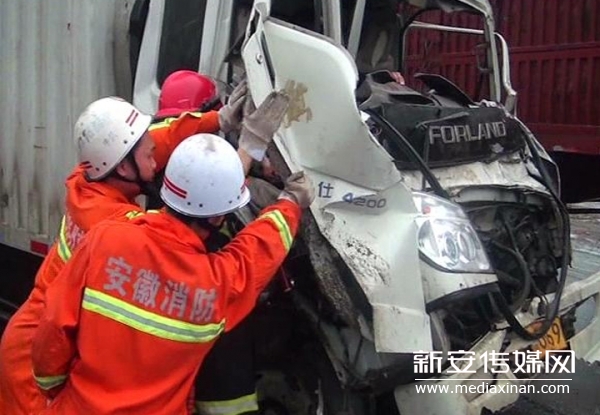 临泉:小货车追尾撞上大货车致两人受伤,