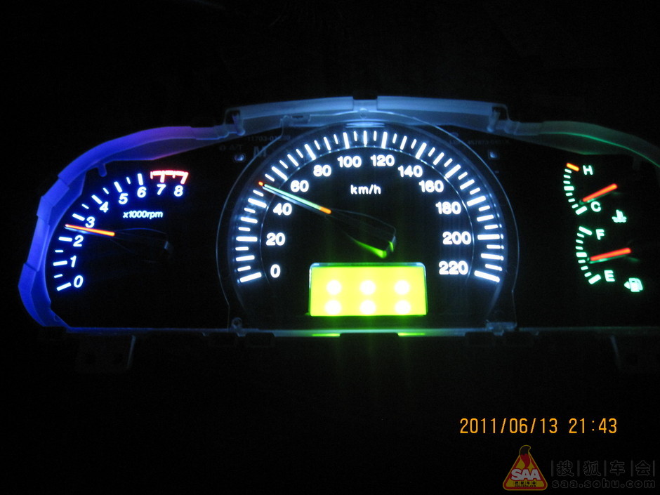 全潮州第一骚改装仪表盘灯第二季 N挡位紫色灯 R挡位红色灯 P档位本来想改装成纯蓝色,结果灯不知道放哪里去,所以改装成冰蓝色 果然够骚 晚上开灯效果 [ 本帖最后由只拓儿