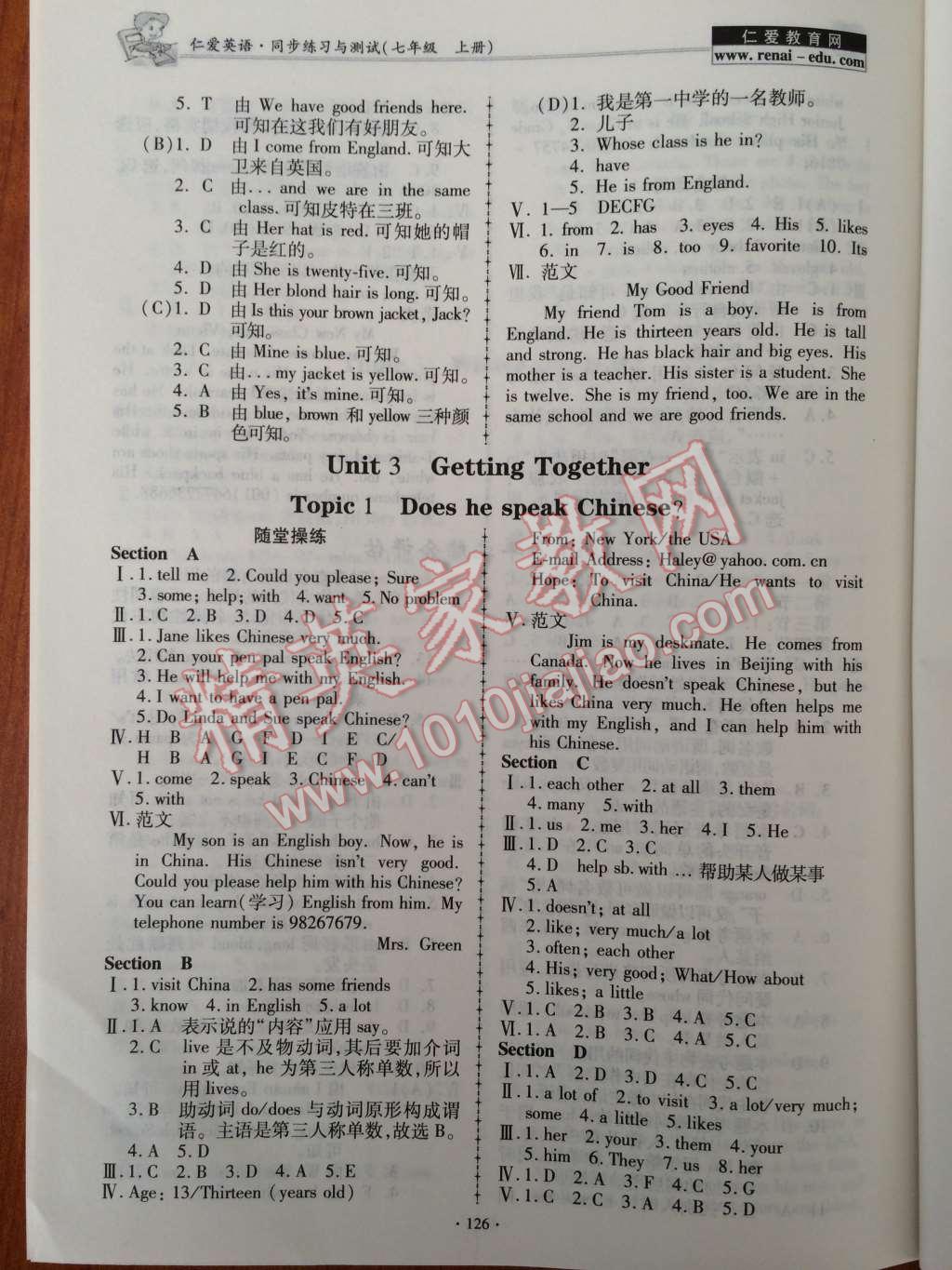 仁爱英语七年级unit2topic2仁爱英语七年级