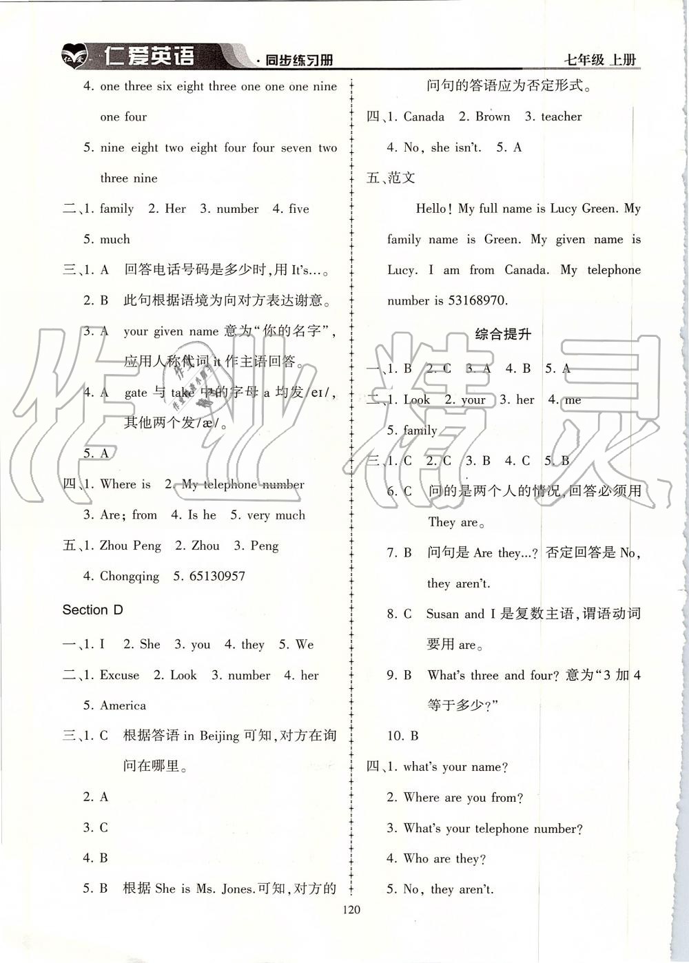 仁爱版英语七年级上Unit1 Topic3 SectionD- 答: What grade are you in?你在几年级? I'm in Grade Seven.我在七年级。 How do That's OK./You're welcome.不用谢 (我不知道你们这一阶的英语书有没有改
