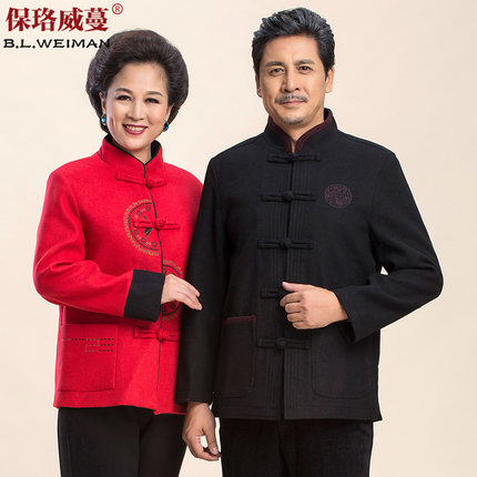 保珞威蔓中国风唐装男中老年人羊毛呢子