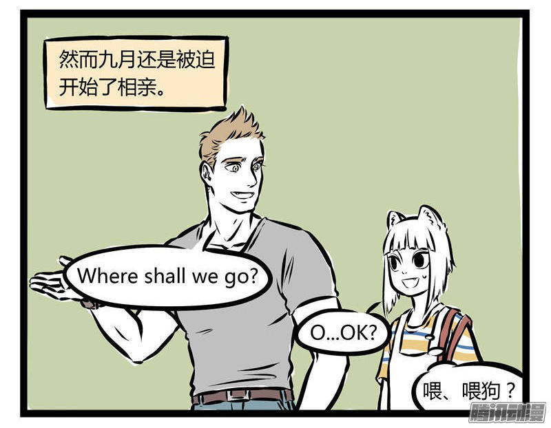搞笑漫画:与老外相亲的狐族少女,英文不好