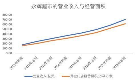 虽然公司在季度报告中没有解释营业收入增加的原因,但《国家商报》的记者在梳理永辉超市历年的年报后发现,永辉超市的营业收入与其门店的营业面积高度相关。随着永辉超市营业面积的稳步增长,其营业收入也实现了稳步增长。