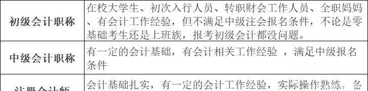 根据不同的人群,老师建议每个人都以这种方式报考,基本技能将会扎实,会计之路将会走得更远。(包括但不限于这些群体)