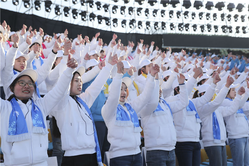 中国日报12月5日讯——2019年12月5日,各界嘉宾和1000名志愿者代表聚集在新建成的北京冬奥会比赛场馆首钢跳台,举行全球招募竞赛志愿者的启动仪式。