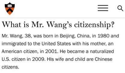 当时,中国外交部发言人鲁抗回应说,“据我们所知,他没有中国国籍”。后来,普林斯顿大学在介绍他的身份时透露,王希岳实际上早在2001年就和他的母亲搬到了美国,他的母亲拥有美国身份,并于2009年获得美国公民身份。所有这些都表明,王希岳的安全是美国政府的责任。