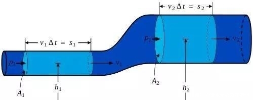 例如,下面的管道部分可以说明这个问题。这是一段从细到粗的管道。根据伯努利方程,水进入粗管后,流速下降,压力上升。然而,水不会向下流动,而是“异常地”从低压区流向高压区——这是流体速度的影响。