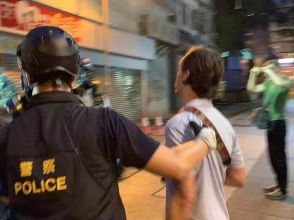 值得注意的是,香港媒体、西方媒体记者和在场的所谓“观察员”都位于警方和示威者之间。警察的任何反应都会吸引大量手电筒。刚刚出狱的黄之峰也出现在现场,拿着扩音器来回走动。