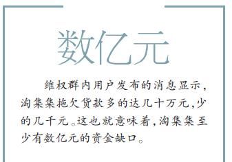 今年9月,淘大收藏的供应商集体要求付款。10月,北京商报记者今天在社交平台上发现了一些维权人士团体,每个团体都有数百人。根据该团体用户发布的消息,淘大收藏欠下几十万元,少欠几千元。这也意味着冀涛冀至少有几亿元的资金缺口。事实上,张正平公开承认,2019年7月,由于一些内外因素,业绩增长受到很大影响,销量停滞不前。9月,由于获得融资确认的延误,冀涛的现金流开始下降,危机已经到来。