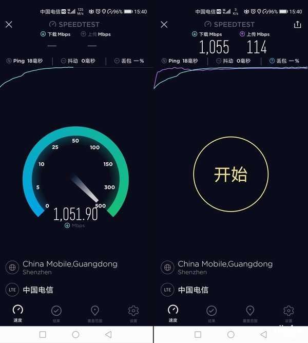 我们之前测量过Glory V30系列的速率,显示它的下载速率为1055Mbps,上传速率为114Mbps,Ping值为18毫秒,抖动为0毫秒,这相当于我们的通用单元,下载速度为131.86 Mb/s,上传速率为14.25mb/s