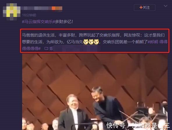 第二天,马云指挥交响乐的消息传到了所有主要网站。吃瓜的人对马云丰富多彩的退休生活感触颇深。其他网民对马云疯狂的跨境行为感到惊讶。作为一名企业家,马云制作电影,玩摇滚,与明星硬汉们战斗,并在体育场为一万人唱歌。因此,其他人嘲笑他:“当你真的做你想做的事时,你会第一个去。”