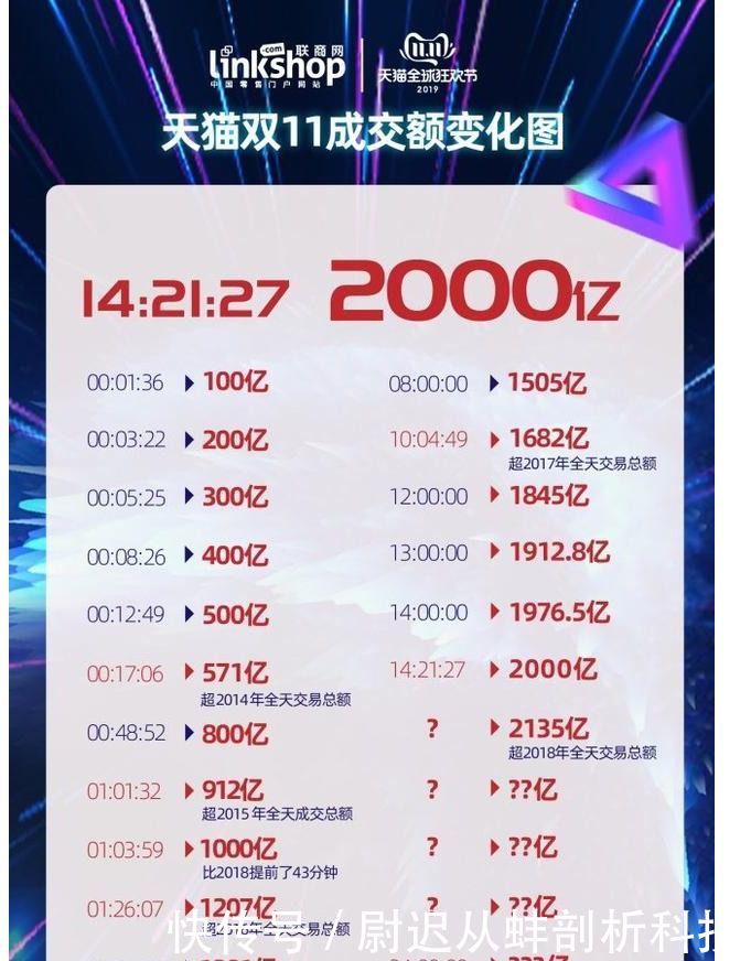 14: 21: 27,天猫11的营业额翻了一番,超过了2000亿元。