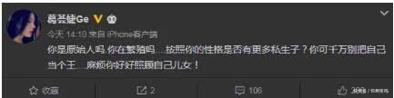 最近,葛惠杰在社交媒体上发表了如下言论:“你是原始人吗,你有教养吗...根据你的性格,你有更多的私生子吗?你不能把自己当成国王...请好好照顾你的孩子!”