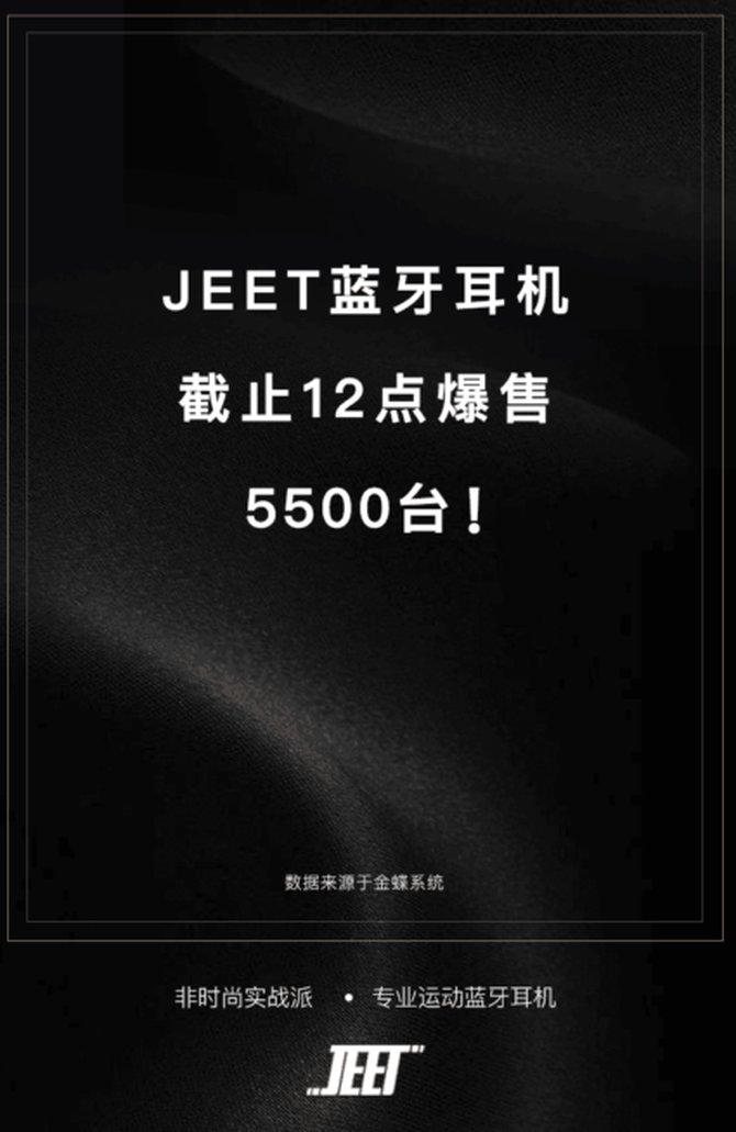 截拳道是中国三大蓝牙耳机品牌。其JEET Air Plus具有极高的性价比,因此销量一路飙升,带动了整个品牌的销量。截至12点,该公司售出了5500台,当日销量翻了一番。JEET在外观上倡导非时尚、非X、不追求时尚的理念,但坚持产品质量和技术研发。这种务实的精神被用户深深认可。