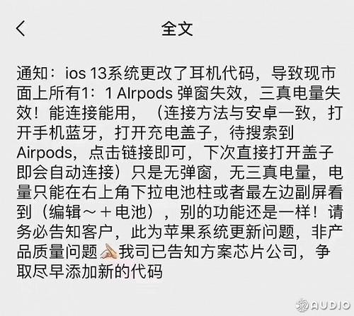 根据我喜欢的供应链信息,这背后的原因是iOS13改变了一些耳机代码,导致了上述故障。