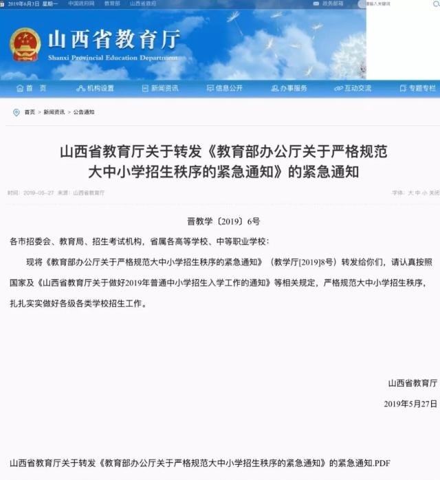 山西省教育厅关于转发《教育部办公厅关于严格规范大、中、小学招生秩序的紧急通知》的紧急通知