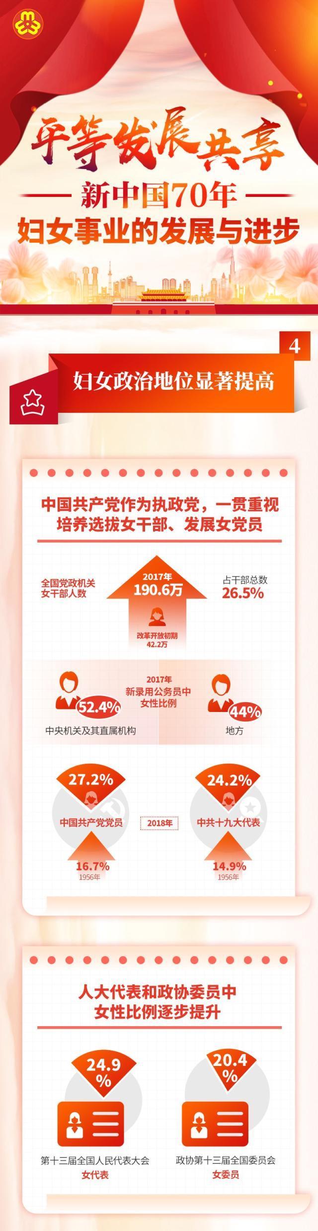 9月19日,国务院新闻办公室发布了《平等发展与共享:新中国70年妇女事业的发展与进步》白皮书,并举行了新闻发布会,介绍新中国成立70年来妇女事业的发展成就。