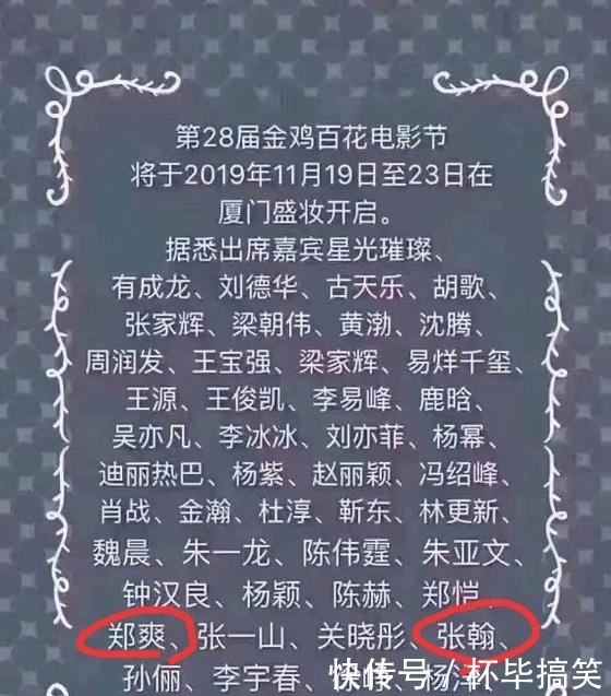 娱乐圈是一个非常小的圈子。在刚刚结束的金鸡百花电影节上,郑爽和张寒可能又在同一个舞台上了。组织者邀请了许多明星参加。网上公布的客人名单也包括郑爽和张寒的名字,但是张寒和郑爽的名字被两个人的名字分开了。