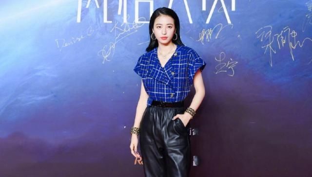周予同穿着蓝色格子呢子短袖和皮裤出现。在寒冷的冬天,他也很漂亮。
