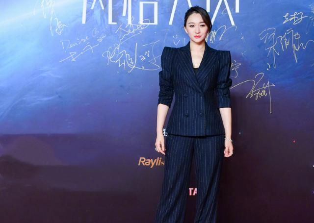 李·小然仍然穿着他自己的风格,穿着条纹西装,这显示了一个独立女性的风格。