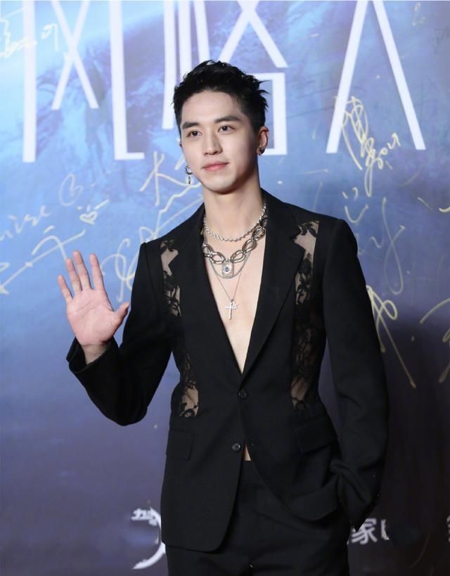 王紫逸穿着黑色的长西装和衣架,留着复古的卷发。他英俊而沙沙作响。他体内充满荷尔蒙。那是一场爆炸。
