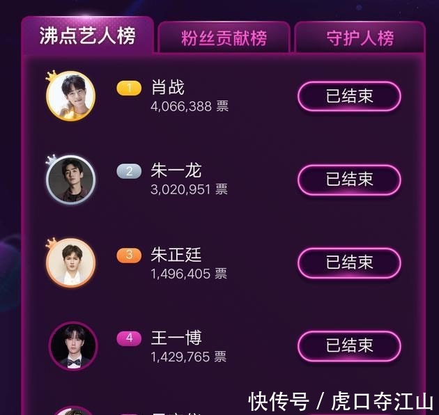 我以为今天投票结束时投票不会改变。一般来说,前三名应该是小战、朱一龙和王一波。但我没想到的是,朱郑挺的粉丝非常强大。直到最后几分钟,朱郑挺的粉丝们仍然疯狂地为朱郑挺投票。最后,在最后三分钟,朱郑挺冲进前三名,王一波跌至第四名。