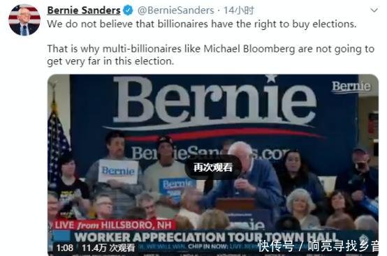 桑德斯对彭博的富裕状况有些不满:24日,桑德斯在推特上写道:“我们认为亿万富翁没有资格购买选举。这就是为什么我认为像彭博这样的人不会在选举中走得太远。”