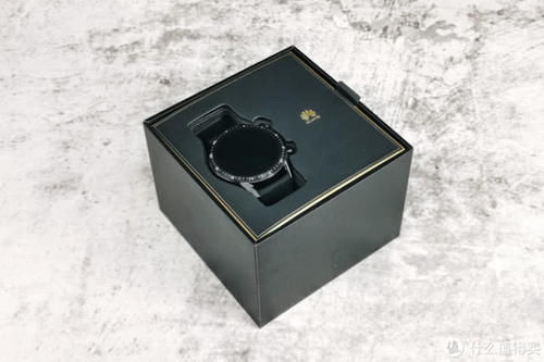 外包装相对简单,旁边有一块秘密画的手表。金色字体和金色LOGO。