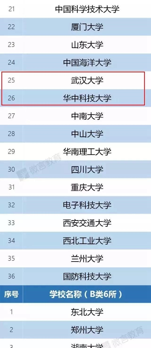 25。武汉大学:发展迅速,文科一般。马克思主义理论、测绘、地球物理学等学科在全国名列前茅。