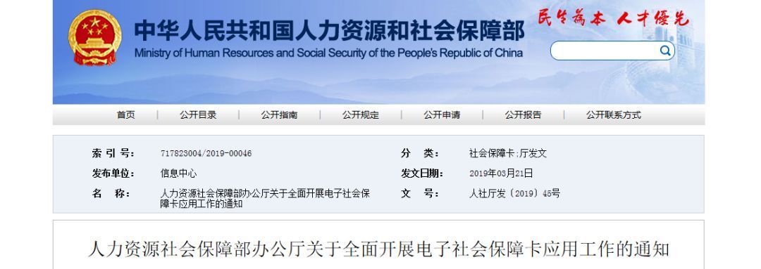 今年4月,人力资源和社会保障部发布了《关于全面实施电子社会保障卡应用的通知》(人力资源和社会保障部发〔2019〕45号),建议逐步实现电子社会保障卡的广泛应用。