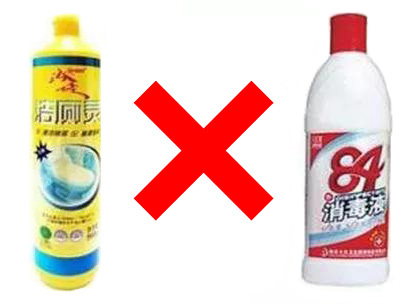 记住:一旦出现头晕、乏力、呼吸困难、意识模糊等中毒症状,应立即开窗通风,转移至空气新鲜处,保持呼吸道通畅。6、混用两种清洁剂教训:据安徽商报报道,蚌埠市两名小孩将洁厕灵和84消毒液混合倒入盆中,化学反应生成氯气,引发一人死亡、多人中毒的悲剧。84消毒液的主要成分是次氯酸钠,洁厕灵的主要成分是盐酸,两者混合会生成氯气。氯气是一种有毒气体,会使人恶心、呕吐、胸口疼痛和腹泻。