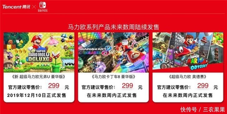 在游戏方面,它将包括售价299元的“新超级马里奥兄弟U豪华版”,将于12月10日在任天堂e店正式发售。用户可以通过微信购买。“马里奥卡丁车8豪华版”和“超级马里奥奥德赛”将在几周内以299元的相同价格售出。游戏交换卡将稍后出售,真正的游戏卡带将在明年春节前后出售。