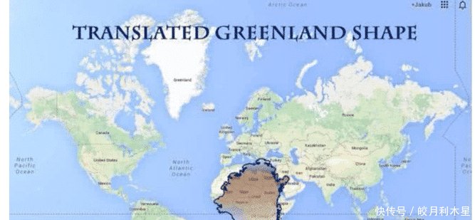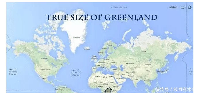 通过一些特殊的软件,我们可以恢复它们的真实尺寸。如果格陵兰岛位于赤道附近(如图所示),它与非洲的大小有一个更现实的比较,结果确实比预期的要小。格陵兰岛的实际面积比阿尔及利亚小,阿尔及利亚比原来的面积小10多倍。