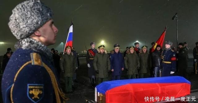飞行员的遗体被运回俄罗斯。图为俄罗斯军队的欢迎仪式。