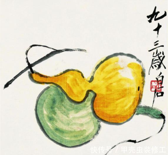 1957年9月,齐白石那时已经病得很重,已经没有知觉了。但是他不能放弃他心爱的中国画。临终时,他仍然足够强壮,能够坚持住自己的病情。尽管他的手和脚抖得很厉害,很难拿起笔,他还是坚持要完成《葫芦秘诀》。从这张照片中,我们可以看到当时里面所有的线都是弯曲的,就像一条蚯蚓刚刚被挖出来放在地上,无法挣扎。当时许多人感慨道:白石老人晚年的技艺已经不如往年了。