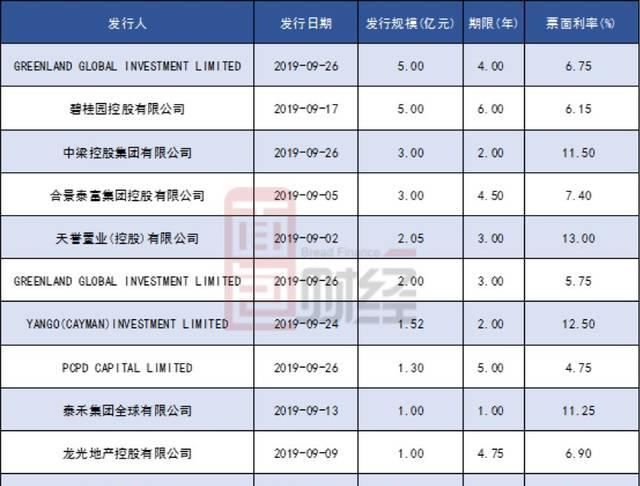 境外美元债发行公告_住房企业9月份发行的美元债务逐月增长60%;四家住房企业利率超过10%