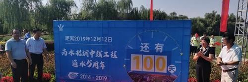 图为惠南庄泵站各界嘉宾共同见证南水北调中线工程开通五周年倒计时100天。新华社-中国经济网数据显示,南水北调中线一期工程将于2014年12月12日竣工。中线一期工程提前竣工,从丹江口水库引水,全长1432公里,全线贯通。受水区是河南、河北、天津和北京。设计年供水量为95亿立方米。