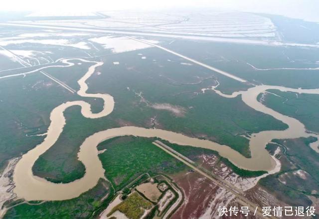 东台东沙岛,潮平,潮涨入海,变化无穷;