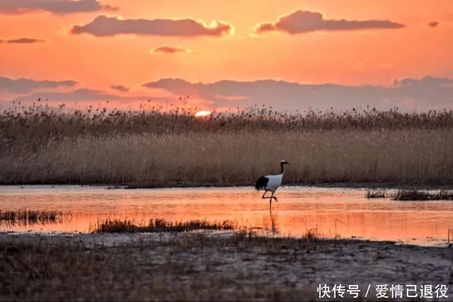 落日给湿地覆盖了一层黄金。盐城当时令人眼花缭乱。