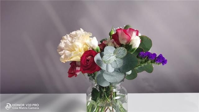 荣耀V30 PRO上的1200万像素镜头不仅是焦平面,也是视角为109的超广角镜头。在同一平面上,它可以容纳比4000万像素超灵敏主相机更宽的视野。当我们在同一个位置拍摄花瓶时,我们可以看到超灵敏的主摄像头只能拍摄花的部分,而超大视角的焦平面可以将整个花瓶的花都包含在画面中。由于金的比例为16:9,所以构图更加方便。每张照片都像一部电影的美丽截图。