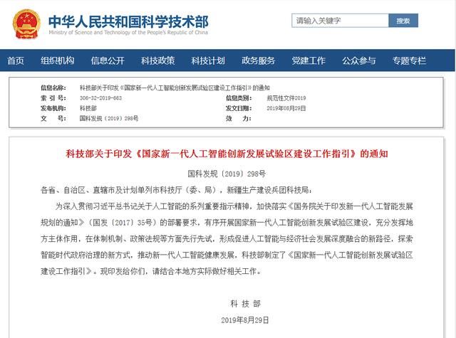 9月5日,科技部网站发布了《国家新一代人工智能创新发展试验区建设指引》的通知。到2023年,全国将建设20个左右的实验区,创新一批实用有效的政策工具,形成一批人工智能与经济社会发展深度融合的典型模式,积累一批可复制、可复制的经验和做法,创造一批具有重大引领和带动作用的人工智能领域。