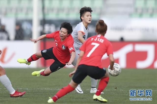 12月10日,中国选手李颖(左上)与韩国选手李英珠(右上)进行了比赛。那一天,在2019年韩国釜山东亚杯女子足球赛中,中国队与韩国队打成平局。新华社记者王京强